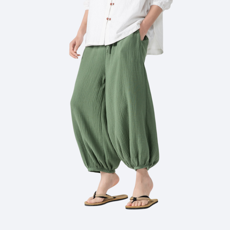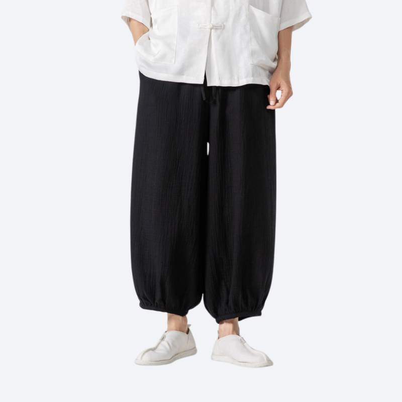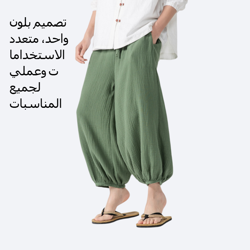 بنطلون واسع الساق فضفاض بتصميم مريح وخامة عالية الجودة، يناسب الإطلالات اليومية والرسمية، يوفر حرية الحركة وسهولة التنسيق مع مختلف القطع.